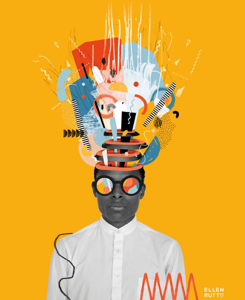 Ellen Rutt est une artiste plasticienne de Detroit qui combine des techniques graphiques pour créer des œuvres qui mixent pop art et art cinétique. C’est une artiste multidisciplinaire qui s’est d’abord forgée un nom dans la scène underground en faisant des collages numériques avec des dessins faits à la main. Outre le fait que son travail est bien représenté dans les galeries d’art, Ellen travaille aussi sur des peintures murales dans la ville de New York, qui associent souvent des éléments abstraits inspirés par Keith Haring et Helen Frankenthaler.